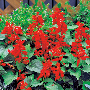 サルビアの一般的なタイプ。花期が長くて、緋赤色以外にも多彩な色を楽しめる。