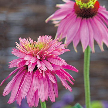 独特の花形で近年大人気の宿根草。花の中心部が球状に盛り上がり、そのまわりに放射状に細長い花弁をつける。キク科