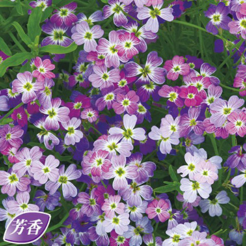 花径2cm程度の小花で、咲き始めは白、その後徐々に桃~青へと色づく。栽培は容易で成長も早い。 アブラナ科