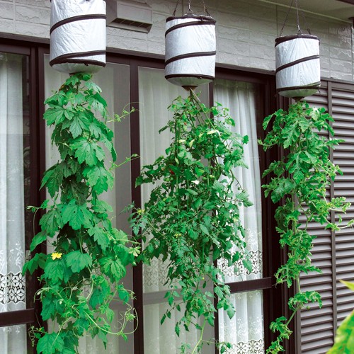 ベランダ・軒下など本品をつり下げる場所があれば、庭や畑がなくても家庭菜園が楽しめます。また重力効果で水分や養分の吸収がよく、健康な野菜が収穫できる新感覚の栽培セットです。(日本製)