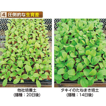タネの発芽や苗作りは作物の成長を左右します。そのベースとなるものは、やはり土です。発芽やその後の成長に適した土を求めて原料やブレンド割合を研究しテストを繰り返して完成した、タキイ種苗だから作れた培養土。手前味噌ですが、本当によく育ちます。