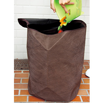 2週間で約7kgの生ごみを堆肥にできます。袋は通気性がよく、虫をシャットアウトするので密閉型バケツを使う方法に比べ約2倍も早く分解。水分をよく切って細かくカットした三角コーナー1杯分(150~200g)の生ごみにパルミスト約15gをふりかけて、内袋に入れ巾着部分をしっかり閉じ、外袋に入れてください。外袋には2つの内袋を入れられます。(日本製)