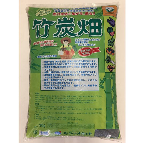 木炭の数倍も多孔質な竹炭は、土壌の通気性・通水性・保水性が改善し、作物の根の酸欠を防ぐとともに、吸着された養水分も作物に供給されやすくなります。また、竹炭には有用微生物を活性させる特徴があり、病害の抑制効果が期待できます。ケイ酸やカリウムなどミネラル豊富で生長の促進、耐病性・品質の向上も期待できます。