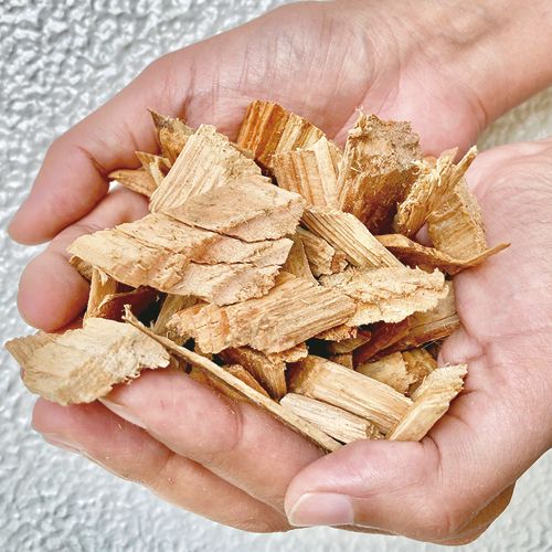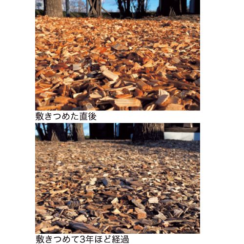北海道産カラマツの樹木チップです。土の上に敷くことで、冬場の寒さ防止、夏場の乾燥防止、梅雨など雨の多い季節の泥はねによる病気予防や雑草防止に役立ちます。(日本製)