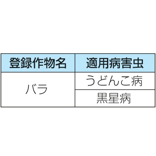 病気の予防効果と治療効果を兼ね備えた殺菌剤です。バラの黒星病や各種植物のうどんこ病やさび病にも効果があります。(日本製)