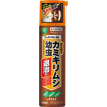 専用ノズルで果樹(かんきつ、いちじく、びわ)や庭木(かえで)の樹幹に食入したカミキリムシ(ゴマダラカミキリ、クワカミキリ)を退治します。アブラムシ、ケムシ、ハダニなどの害虫にも効果的です。(日本製)(エアゾール剤)