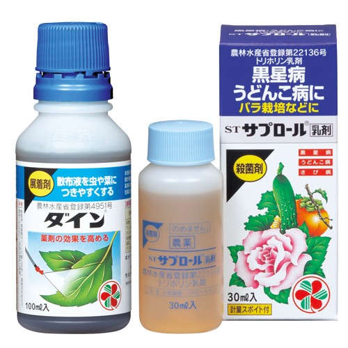 (1)STサプロール乳剤/葉の中に成分が浸透し、予防と治療の効果を発揮。うどんこ病と黒星病にも。(日本製)