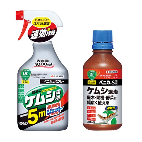 ケムシ、アオムシなどチョウ目害虫に優れた効果があり、庭木・果樹・野菜などに幅広く使えます。速効性と持続性(チャドクガ・若令幼虫で1~2週間、散布葉)があり、害虫を効果的に退治します。(日本製)