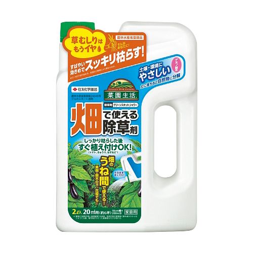 52作物(適用作物名数)のまわりに使えます。散布液がかかった雑草だけが枯れます。また雑草を枯らした後に種まき(*1)、苗の植え付け(*2)ができます。散布後2~5日(*3)で枯れ始め、7~14日で退治します。アミノ酸系除草成分で、土に落ちると自然物に分解します。(日本製)