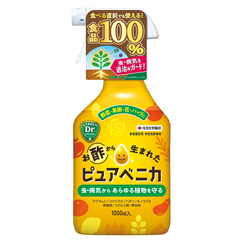 ピュアな醸造酢生まれ。100%国産食品成分(食酢)で虫も病気も退治!収穫直前まで何回でも使用可能。発生前からこまめにスプレーして、うどんこ病・黒星病などの病気の予防から、ナメクジ・ハスモンヨトウの食害抑制、モンシロチョウの産卵抑制までやっかいな病害虫トラブルからあらゆる植物たちを守ります!(日本製)