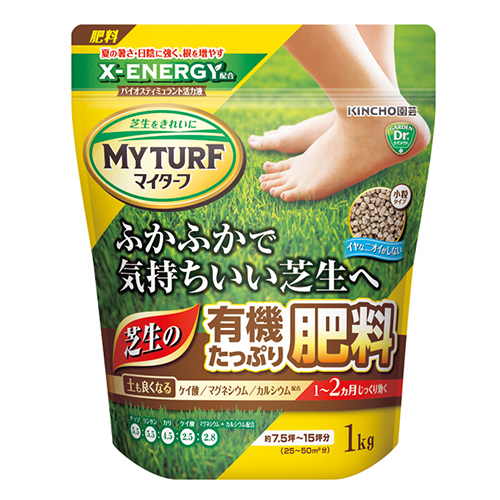 夏の暑さ・日陰に強く、根を増やすバイオスティミュラント活力液「X-ENERGY」を配合した芝生専用有機肥料。ケイ酸・マグネシウム・カルシウムも配合されており、土壌改良効果もあり。1~2ヶ月じっくり効きます。(日本製)