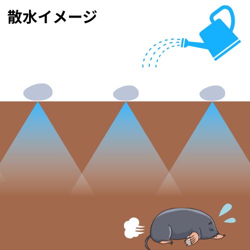 【モグラの場合】 ・守りたい土地全体またはその土地を囲むように均一に散布します。