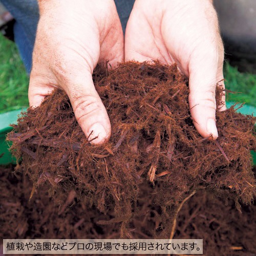 林産未利用資源である国産100%の天然スギ・ヒノキの木皮を化学的処理を行わず有効活用した自然に優しいリサイクルマルチ材です。使用方法はただ5cmほどの厚さに敷き詰めるだけです。天然の有機質資材なので、腐食が進むと将来的には土に還ります。(日本製)