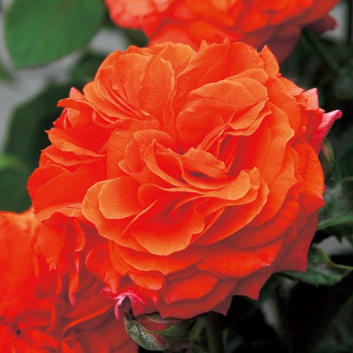 つるバラでは珍しい鮮やかな濃オレンジ色の丸弁ロゼット咲きで、房咲きになる。うどんこ病、黒星病に強いのも特長。寒さに当たると枝に黒いシミができるが生育に問題はない。返り咲き。バラ科