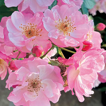 しなやかな枝に小さな花を房状に咲かせる、ランブラーローズの「シルエッタシリーズ」。コルデス作出。バラ科