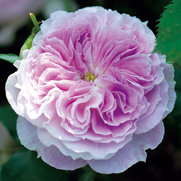 グリーンがかったクリーム色の蕾から、紫ピンクに染まった花弁が渦を巻くように重なるロゼット咲きになり、グリーンアイをのぞかせる。香りは甘く優しい。バラ科