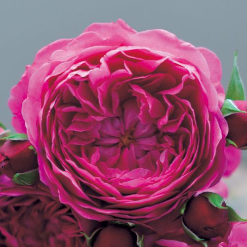 アンティークな雰囲気の赤紫色でボタンアイのロゼット咲き。房咲きで繰り返しよく咲き樹勢もよい。フランスの伝統工芸にちなみ命名。やや寒さに弱いので植え付け後3年ほどは鉢で管理するとよい。バラ科