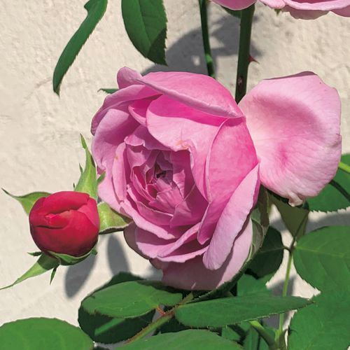 青みがかったピンクのカップ咲きからロゼット咲きとなり、時に花芯をのぞかせる。純粋かつ強いダマスク系の香り。アーリーモダンローズとオールドローズの交配品種。バラ科