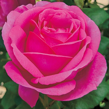 ボリュームのある濃ピンク~ピンクの大輪花に、ダマスクと芳醇なフルーツ香を含む香りが素晴らしい。耐病性も高く、濃くきれいな照葉と花のコントラストも美しく、香りと強さを両立している。あまり薬剤を使いたくない方におすすめ。タンタウ作出。バラ科