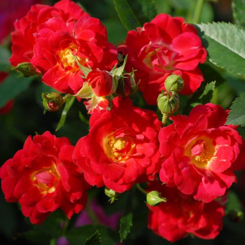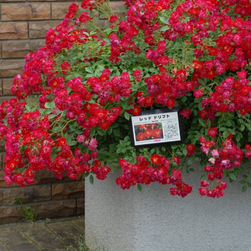 シリーズ内で最小輪の、かわいらしい鮮スカーレット色花。成長しても高くならずに横に広がり、花壇前列などで活躍。メイアン作出。バラ科