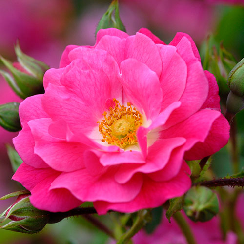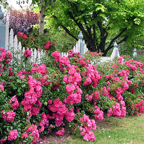 35年以上かけて育種開発された、耐病性に優れ管理が簡単なグラウンドカバー向きローズ。うどんこ病・黒星病に非常に強く薬剤散布をほとんど必要とせず、乾燥にも強いため手間がかからない。四季咲き性で次々と開花し、ブッシュ状になった株は圧巻の見応え。ドイツ・ノアックローゼン作出。