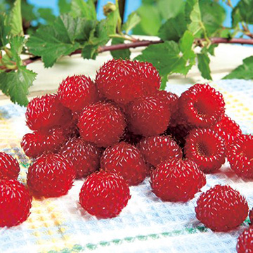 赤実。キイチゴの選抜種で日本のクマイチゴに似た実をつける。甘みが強く酸味少なく生食もでき、ケーキなどとも相性がよい。直立樹形で支柱不要、病害虫の心配もなく強健。バラ科