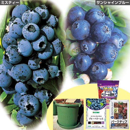 ブルーベリー栽培に必要なプランター、培養土、肥料、バークチップを厳選したタキイ通販オリジナルセットです。(日本製)