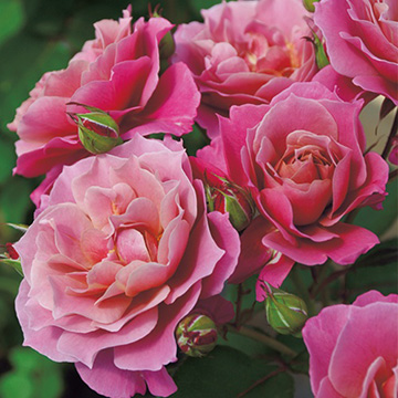 濃い茶からベージュピンクのグラデーションが美しい。丸弁八重の房咲き花。樹勢がよく、耐病性もよい。無農薬栽培も可能な初心者にも育てやすい。バラ科