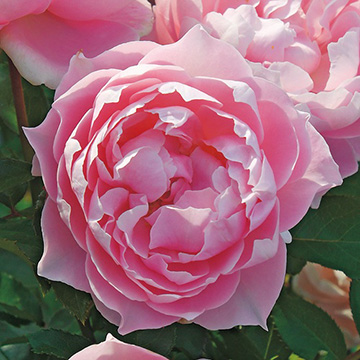 淡いサーモンピンク、波状弁咲き、中輪房咲きの花。花もちもよく、花弁が散りずらい。切花にもむく。耐病性も強く、育てやすい。バラ科