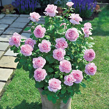 明るいピンクの大輪ロゼット咲き。アニス、はちみつ、ティーの甘さとさわやかさのバランスがよい。耐病性・樹勢も強く、育てやすい。バラ科