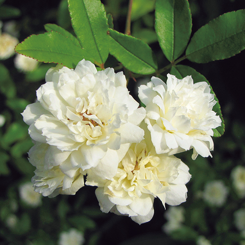 育てやすく丈夫な花木で、つるは細くしなやかで、トゲが少なく、他のバラに先駆けて径2cmの八重小花を株いっぱいに咲かせる。バラ科