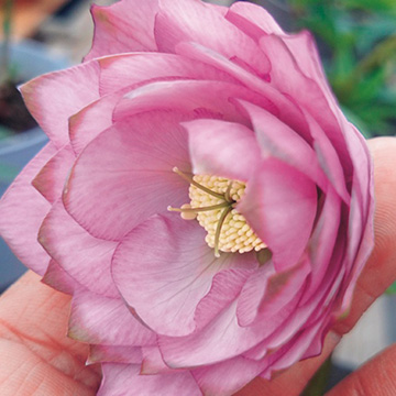 ピンクの花弁にアンティーク調の覆輪が入り、その二色の色が重なって個性的な色合いが生まれる。花弁の濃淡や覆輪の入り方には個体差があるのも魅力。秋~翌春は日向で、夏は半日陰で管理する。キンポウゲ科