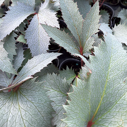 ステルニー系の品種で、葉に美しい銀白色の光沢が入ることから「スーパーシルバー」の品種名が付いた。花色はグリーンからあずき色を帯び、シルバーリーフと相まって独特の趣を見せる。存在感のある株立ちになるのも特徴。キンポウゲ科