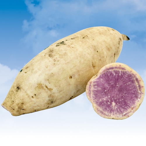 紫いもとしては甘味が強く、粘質で食味良好。古くから鹿児島県種子島で作られてきた在来種。肉色は淡紫色だが、加熱することでさらに色が鮮やかになる。ヒルガオ科