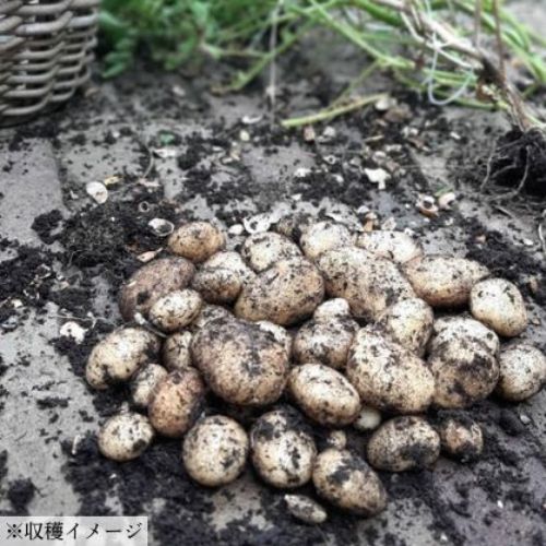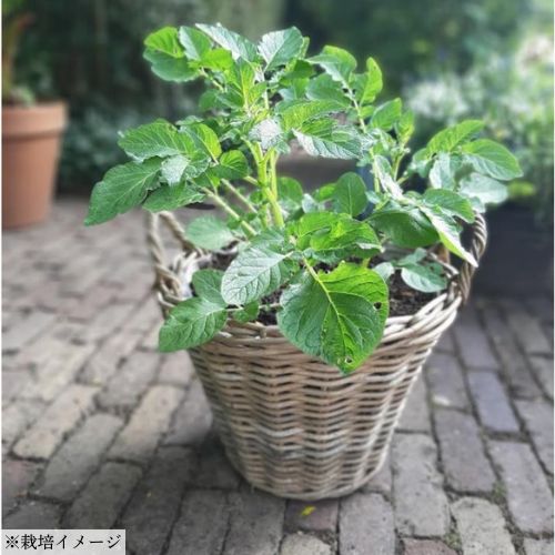 実は小ぶりで、皮も薄いため、収穫後すぐは皮を剝かずに調理がおすすめ。芋に芽が少なく、皮のまま調理すれば煮崩れの心配も少ない。1ポット(1株)から、大小合わせて約350gの芋の収穫が見込めて、小スペースで栽培でき、プランター栽培にも向く。ナス科