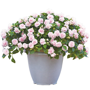 八重咲きインパチェンス・カリフォルニアローズ フィエスタ(R)+Plus アップルブロッサム 農水省品種登録出願中(品種名:Balglimapp) (4株/春)