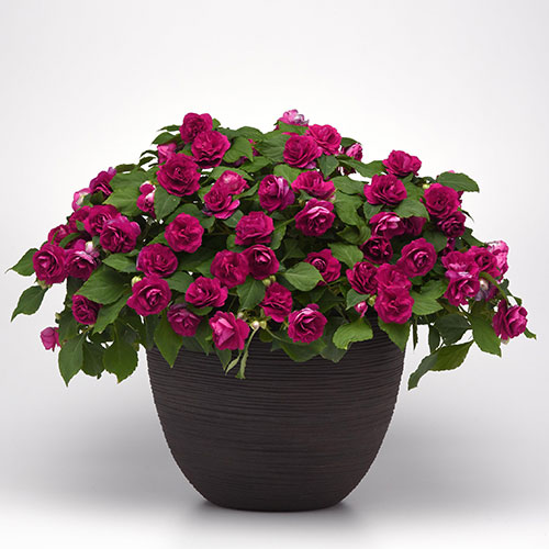 八重咲きインパチェンス・カリフォルニアローズ フィエスタ(R)+Plus バーガンディ 農水省品種登録出願中(品種名:Balglibur)