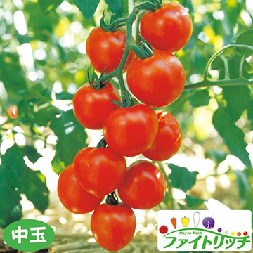 中玉トマトの中でも甘い品種。酸味が少なく食感が滑らかで、糖度以上に甘さを強く感じる。果皮は歯切れがよく口の中に残りにくい。裂果が少なく露地栽培でも作りやすい。葉かび病(Cf9)にも耐病性をもつ。