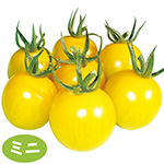 鮮やかなレモンイエローの薄皮ミニトマト。口の中に皮が残りにくく食べやすい。糖度高く適度な酸味があり、食味に優れる。極早生で花数も多く多収。