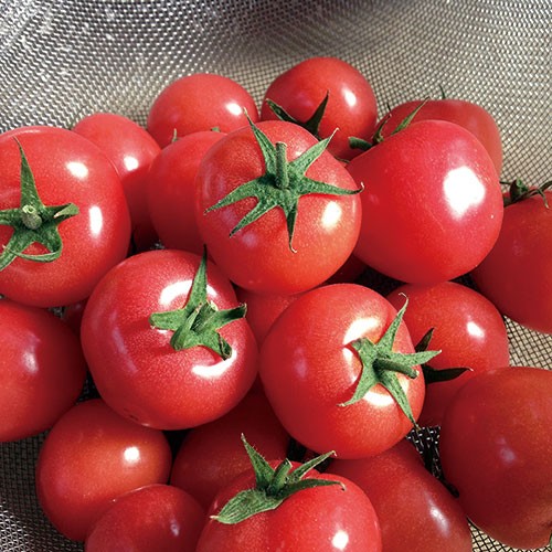 薄皮トマト「ピンキー」の中玉種。一般的に中玉トマトは皮の厚い品種が多いなか、本種は果皮が薄く口の中に残りにくい。糖度と酸味のバランスがよく、大玉トマトを凝縮したようなおいしさ。