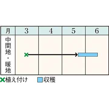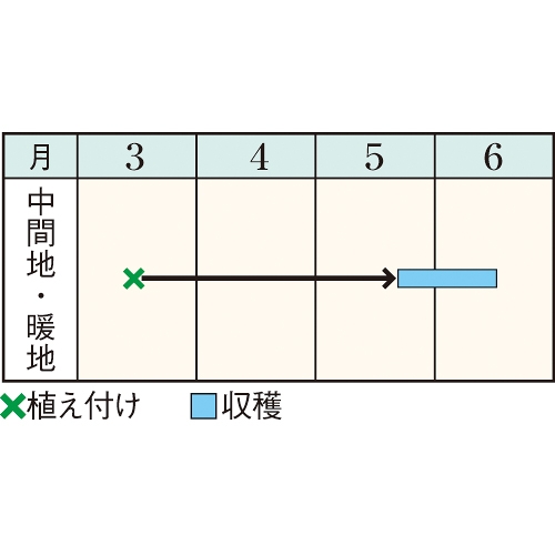 - 花期、収穫期(○○どり)、高さ、収穫重量などの性質は、一般平坦地における適期栽培でのおおよその目安です。