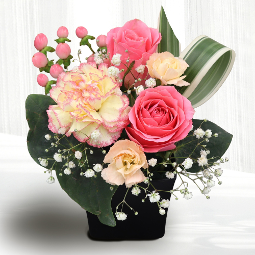 ピンク系でまとめたアレンジメントがかわいらしく、母の日ギフトにぴったり!