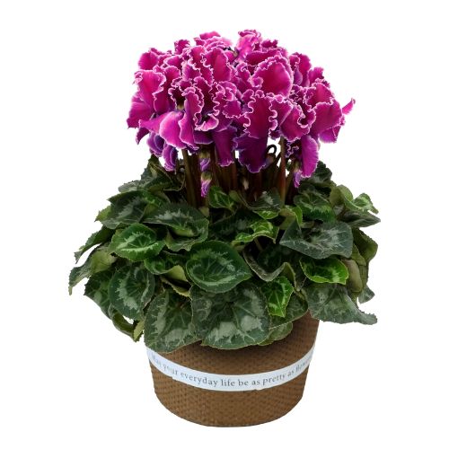 冬から春まで楽しめる蝶々のような花はもちろん、ハート型の葉も美しい、人気のシクラメン。一流のシクラメン生産者が育て上げたすてきな花鉢をお届けします。