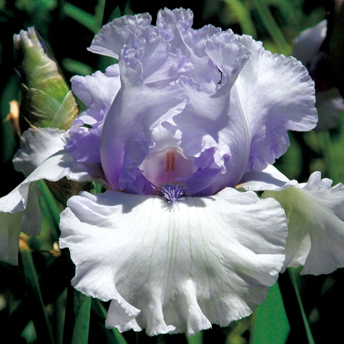 白の花弁の弁元に、極淡く透けるように青色が浮き、幻想的な雰囲気を持って、厚みを感じる幅広の花弁は激しく波打つ。アヤメ科