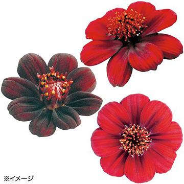 径3~3.5cmの一重花。深みのある赤褐色で、シックな植栽に向く。花にはチョコレートに似た香りがあり、暑さに強く春~秋まで咲く。キク科