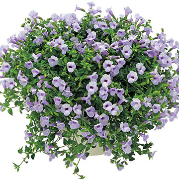 ハンギングやスタンド鉢で美しい姿が楽しめる。暑さに強く強健で次々と開花し、花がらが目立たないのも特長。アゼナ科