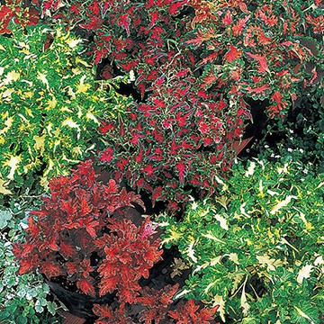 豊富な葉色で花にも劣らない華やかさ。花壇や寄せ植えに好適。シソ科