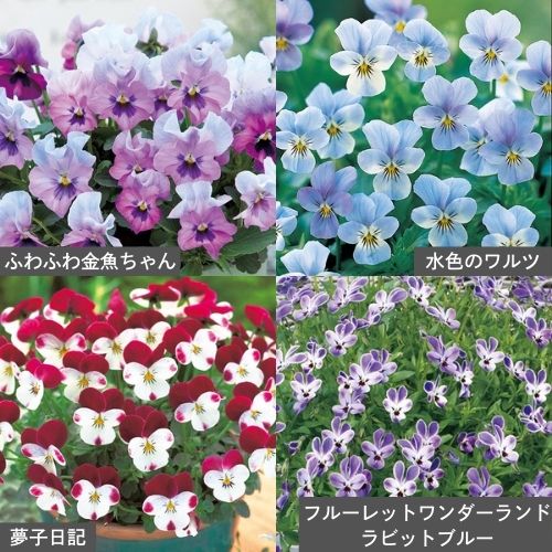多数のパンジービオラから各花型別に昨年ご愛顧いただいた品種をセレクト。パンジービオラの魅力をぎゅっと詰め込んだ感謝祭限定セットです。複数の花形を1度に楽しめるためお気にいりの花形が見つかるかも?!