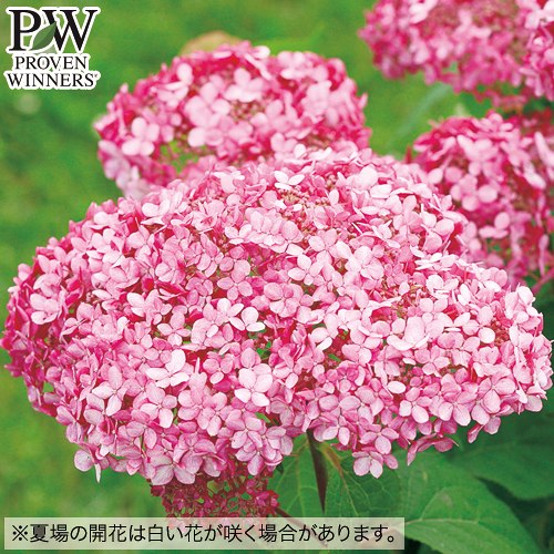 旧名「ピンクのアナベル2」。よりかたくしっかりした茎で濃い花色となり、咲き終わりが褐色ではなく緑色になるのも特徴。最初の花後に切り戻すと返り咲きしやすくなる。アジサイ科