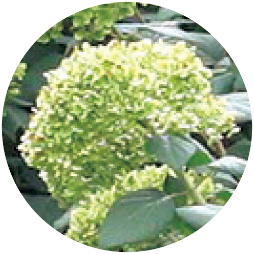 小花が大きなボール状にかたまって咲き、新枝に花芽をつける。